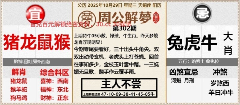 | 301期:稳杀六码╠01.08.20.32.44.47╣开:牛05准 |